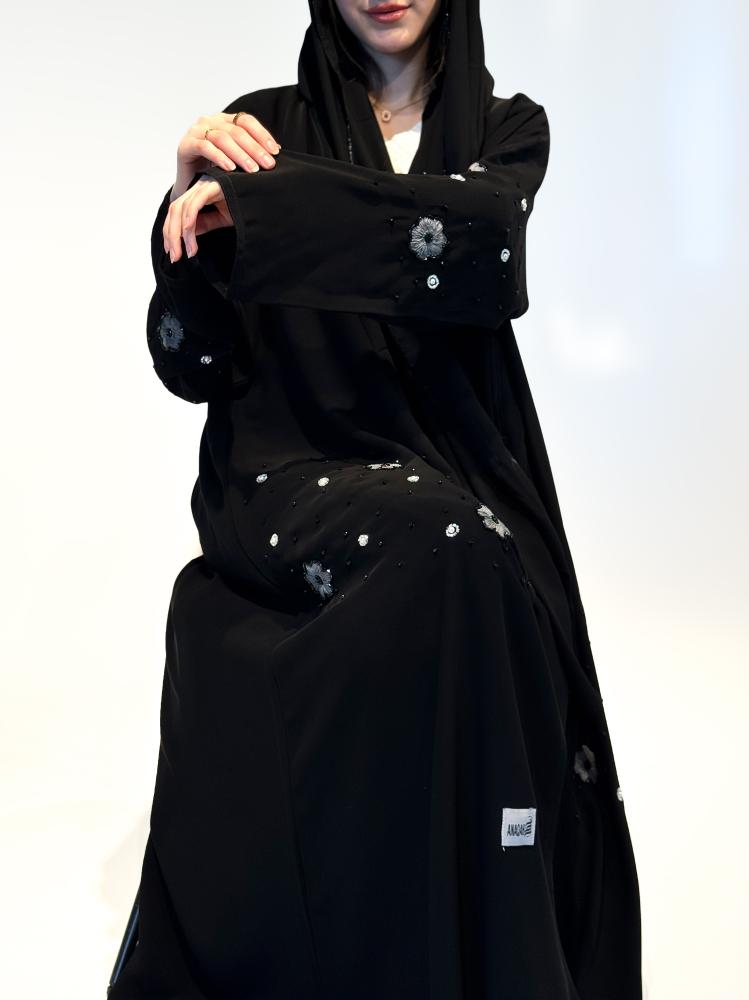 عباية أنيقة من قماش ميني ميت بلمسة تطريز ناعمة ولمسات لامعة
